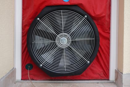 Le diagnostic par pressurisation par ventilateur : après avoir colmaté toutes les issues volontaires (bouches d’aération, trappes d’aération), un système étanche à base de nylon et équipé d’un ventilateur relié à une jauge (manomètre) sera placé sur la porte d’entrée principale ou une fenêtre.